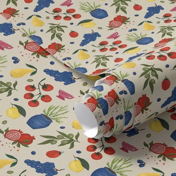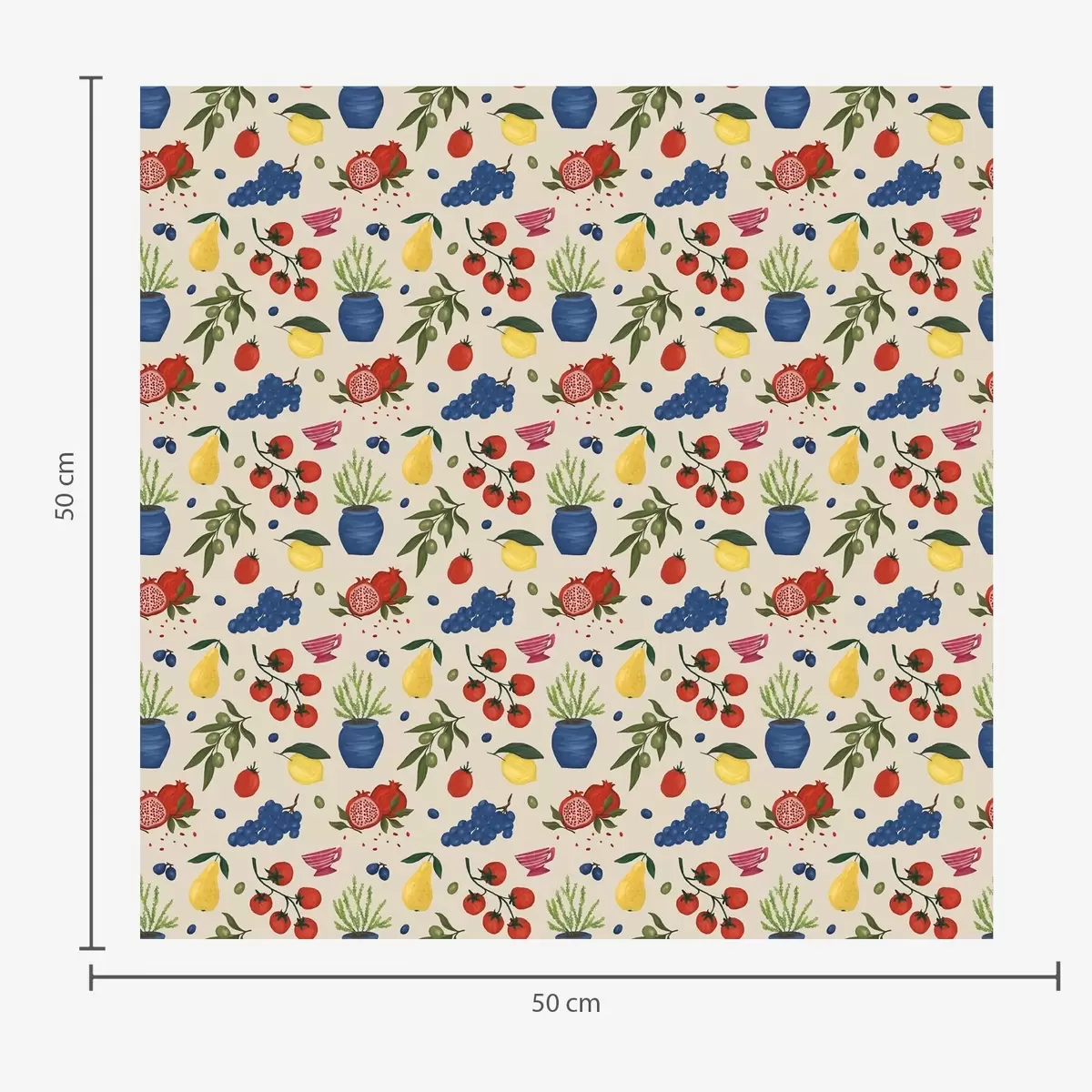 Papel tapiz Patrón vibrante con frutas, ramas y jarrones Nr. a00637