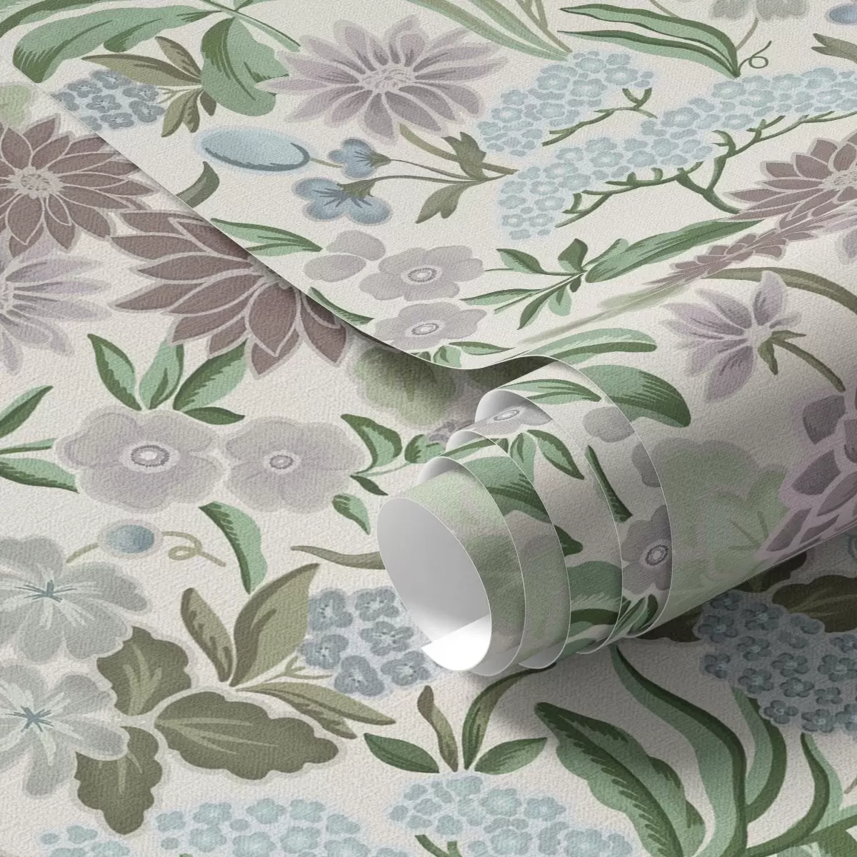 Papel tapiz Flores y follaje en tonos pastel en una paleta de colores azul menta Nr. a00642