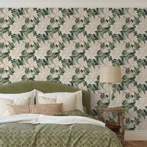 Papel tapiz Grandes flores color crema sobre fondo verde claro Nr. a00646