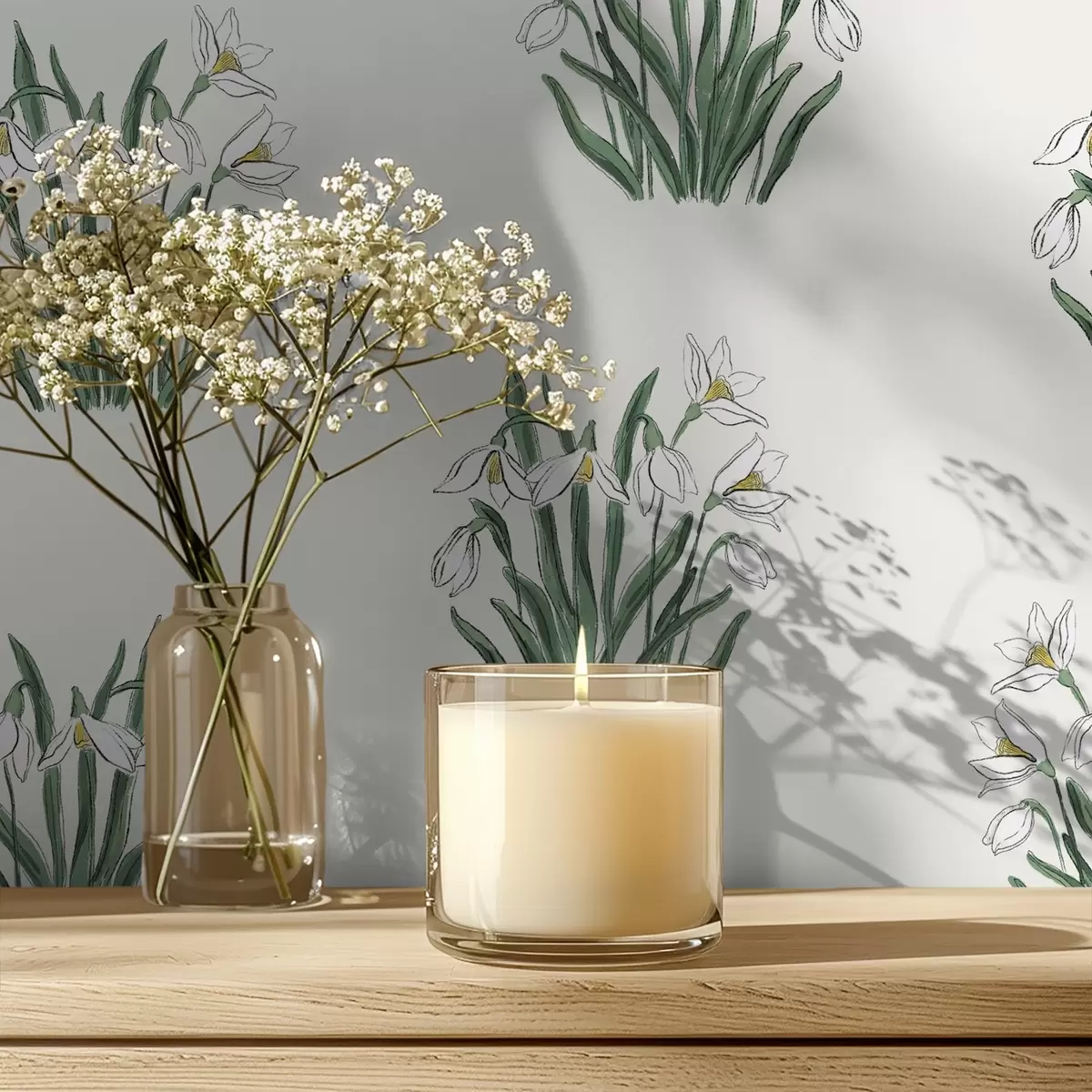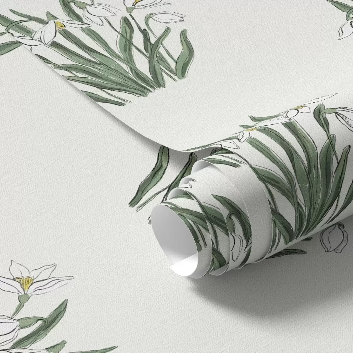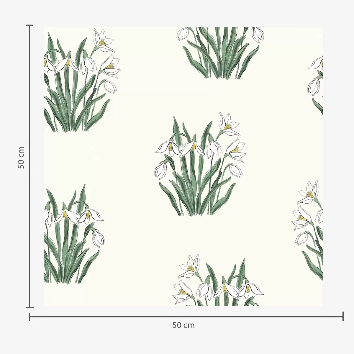 Papel tapiz Campanillas de invierno con hojas verdes sobre fondo gris claro Nr. a00651v1