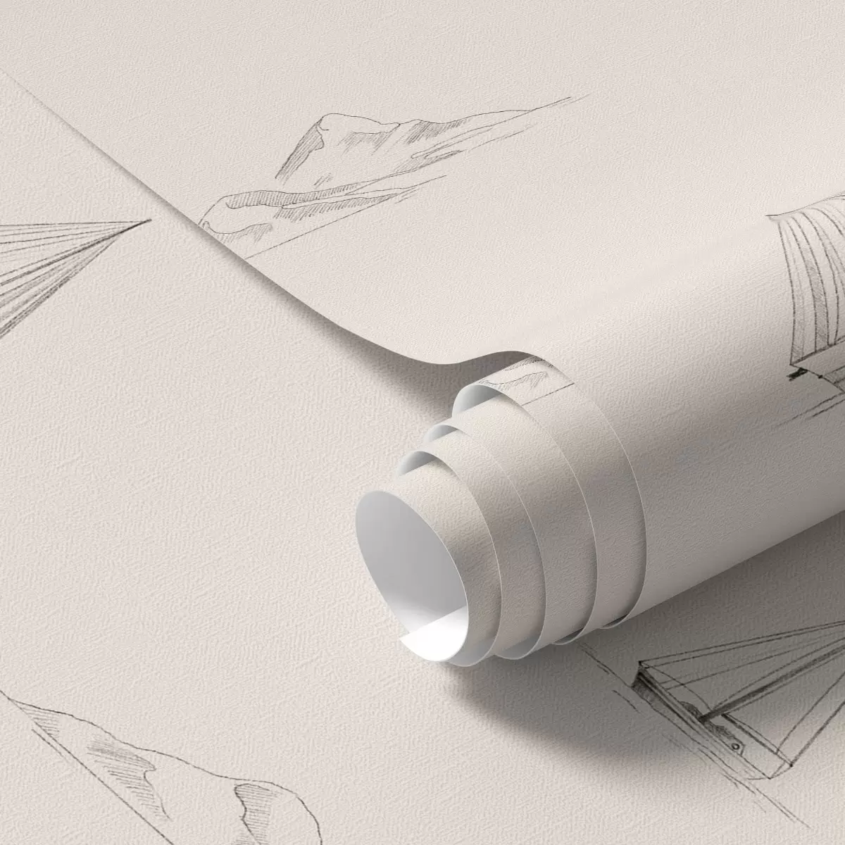 Papel tapiz Bocetos de yates e islas, fondo crema cálido. Nr. a00654v1