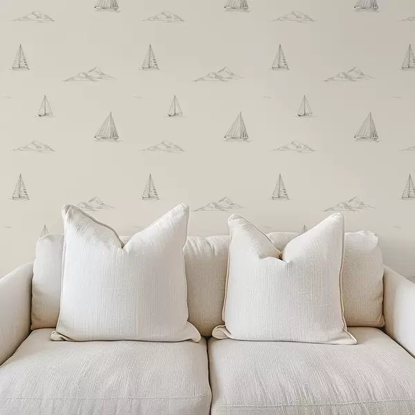 Papel tapiz Bocetos de yates e islas, fondo crema cálido. Nr. a00654v1