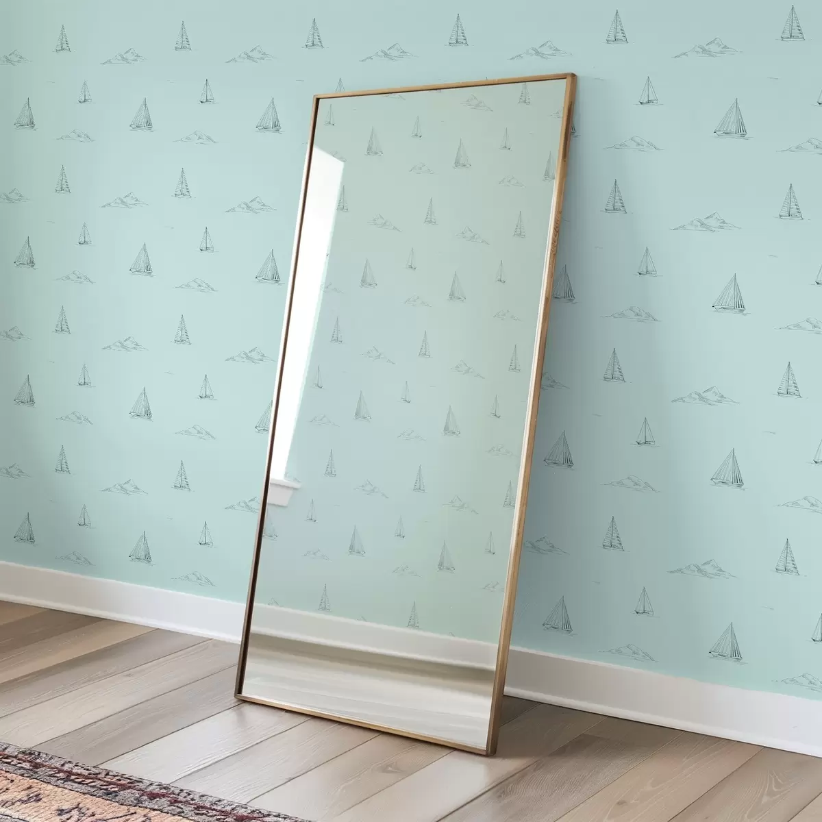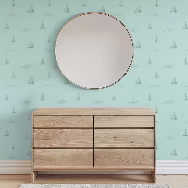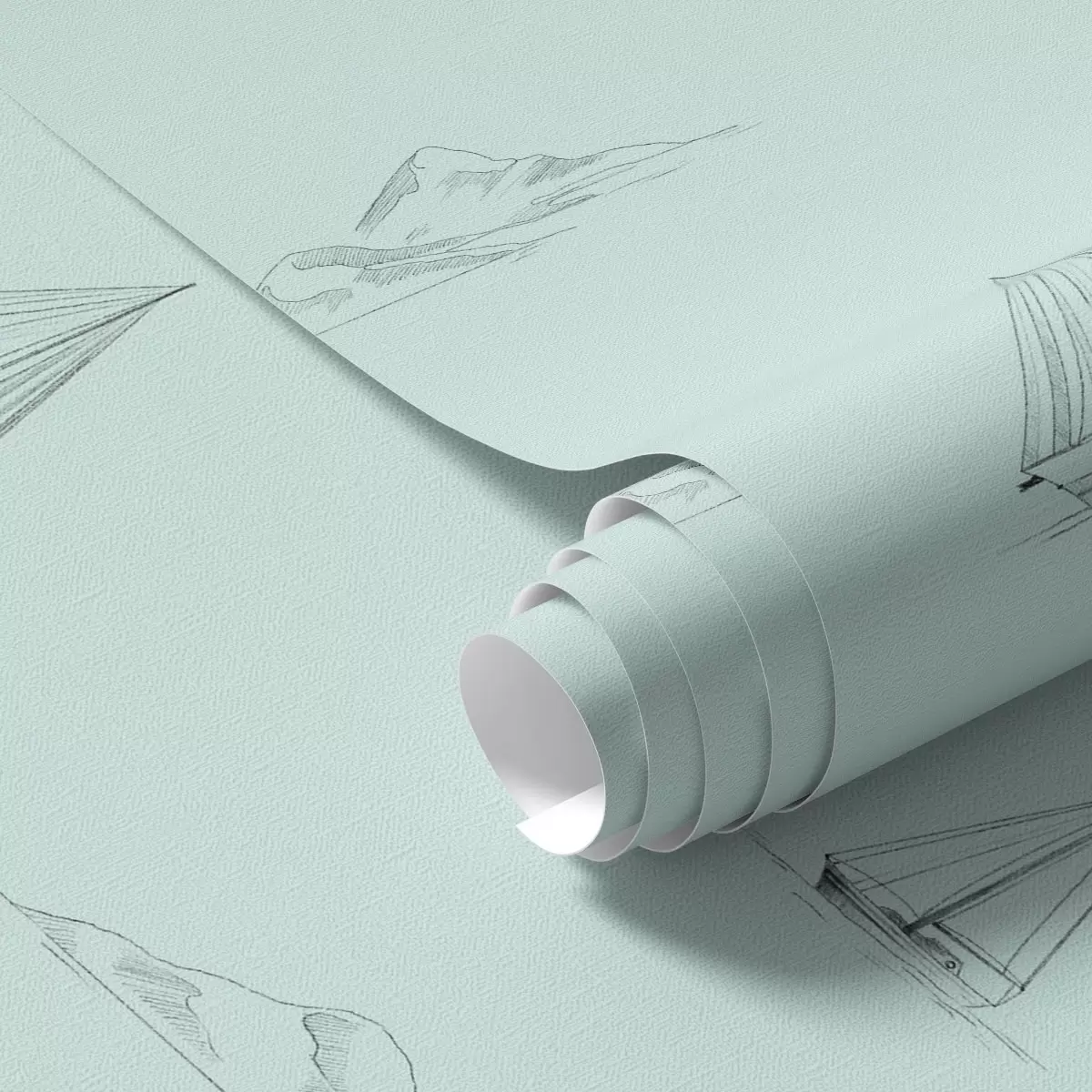 Papel tapiz Bocetos de yates e islas, fondo verde menta Nr. a00654v4