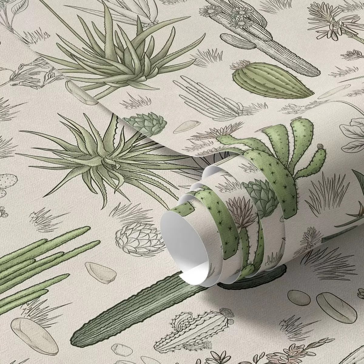 Papel tapiz Cactus y suculentas sobre un fondo cálido, estampado detallado Nr. a00666