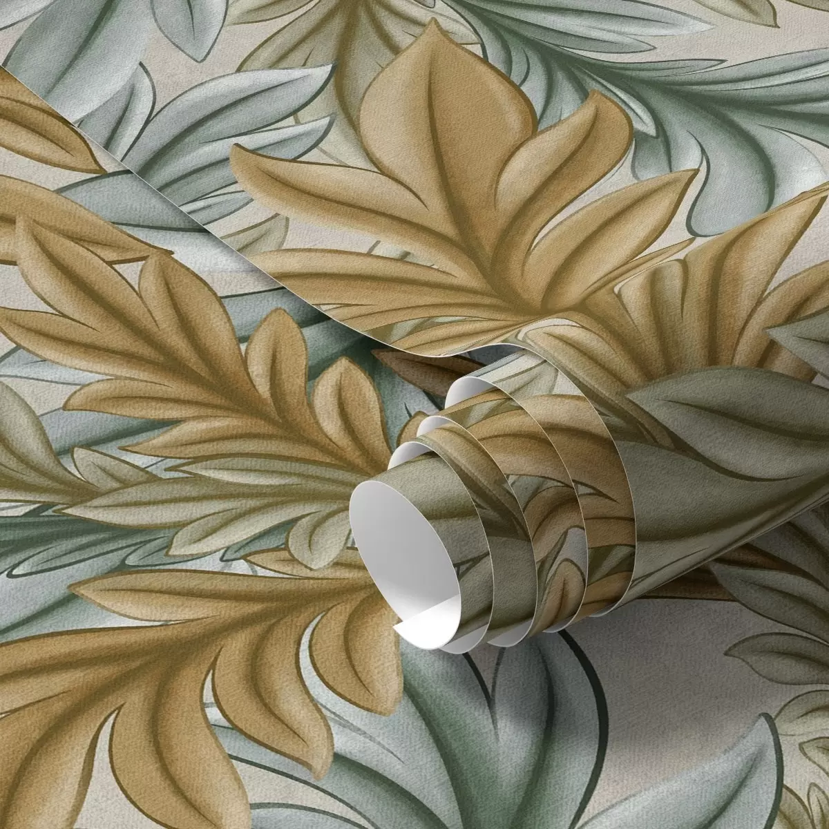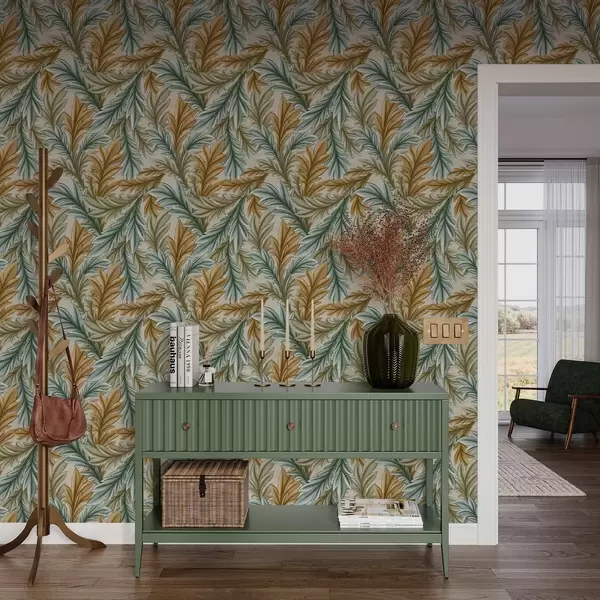 Papel tapiz Follaje decorativo en una cálida paleta de colores ocres y verdes Nr. a00673