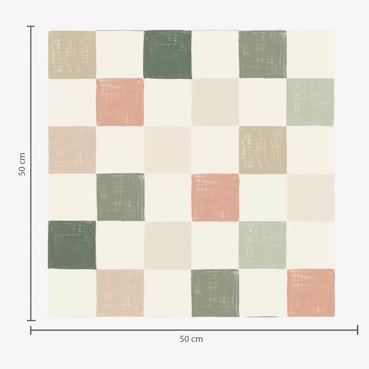 Papel tapiz Suave manta a cuadros en tonos verde pastel, rosa y beige Nr. a00676