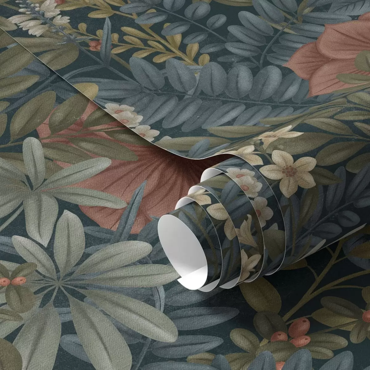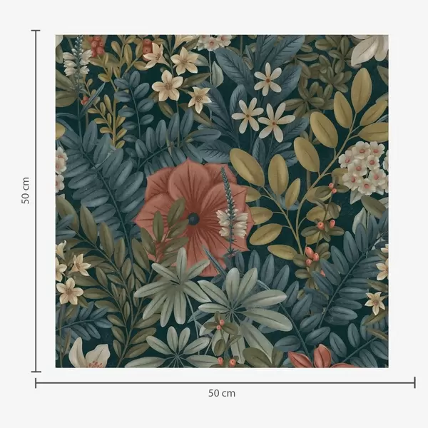 Papel tapiz Fondo oscuro con densas flores y hojas en tonos cálidos Nr. a00678