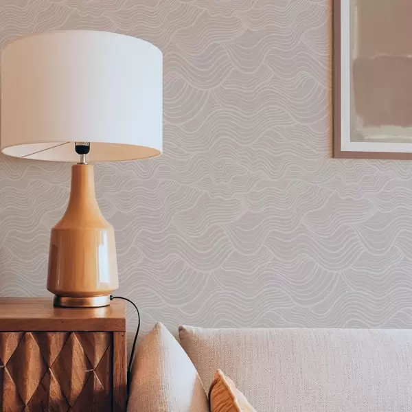 Papel tapiz Líneas onduladas tono sobre tono en beige cálido Nr. a00681v1