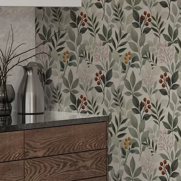 Papel tapiz Hojas con bayas, fondo claro Nr. a00713