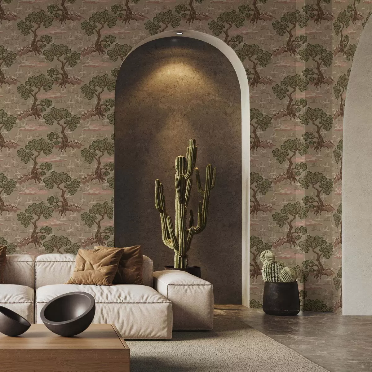 Papel tapiz Paisaje oriental con árboles caprichosos sobre un fondo arenoso Nr. a00715