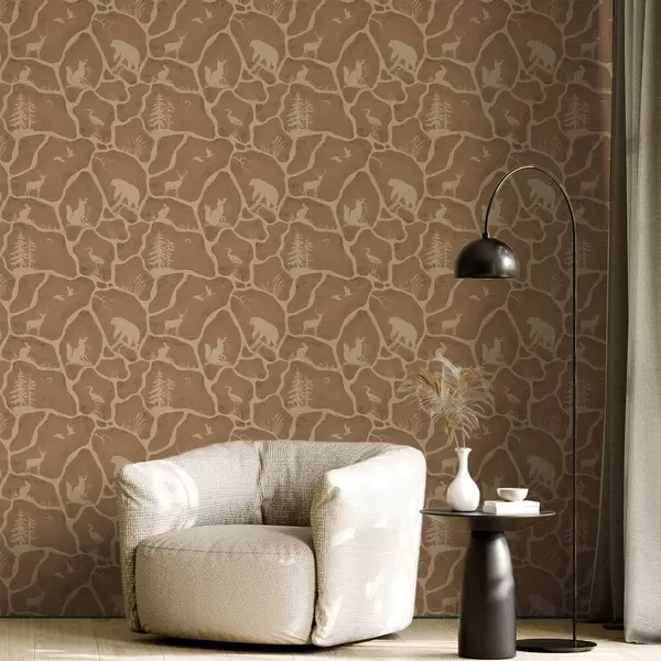 Papel tapiz Siluetas de animales y árboles en un paisaje natural con textura de piedra Nr. a00727