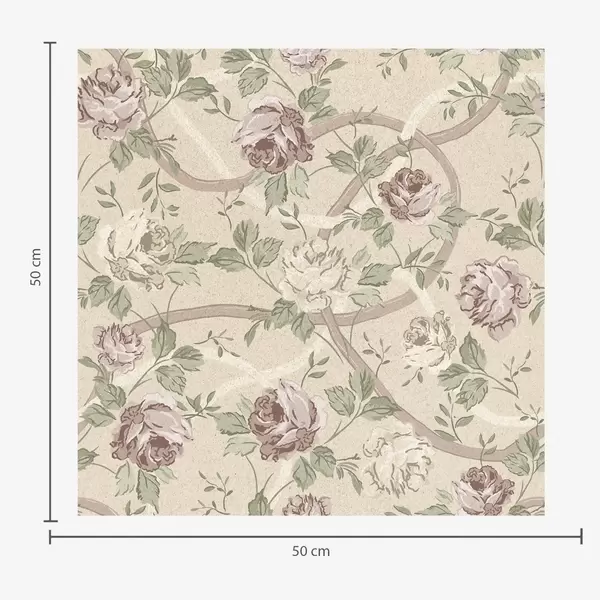 Papel tapiz Rosas con hojas verdes sobre un fondo beige cálido Nr. a00729