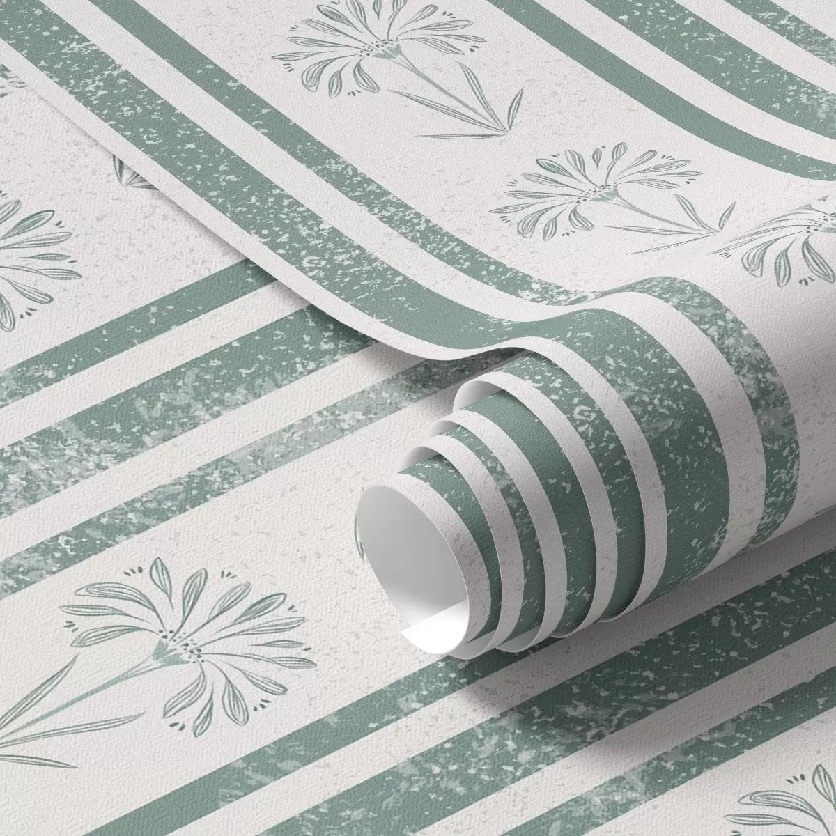 Papel tapiz Patrón de cinta con flores en tonos verdes Nr. a00732