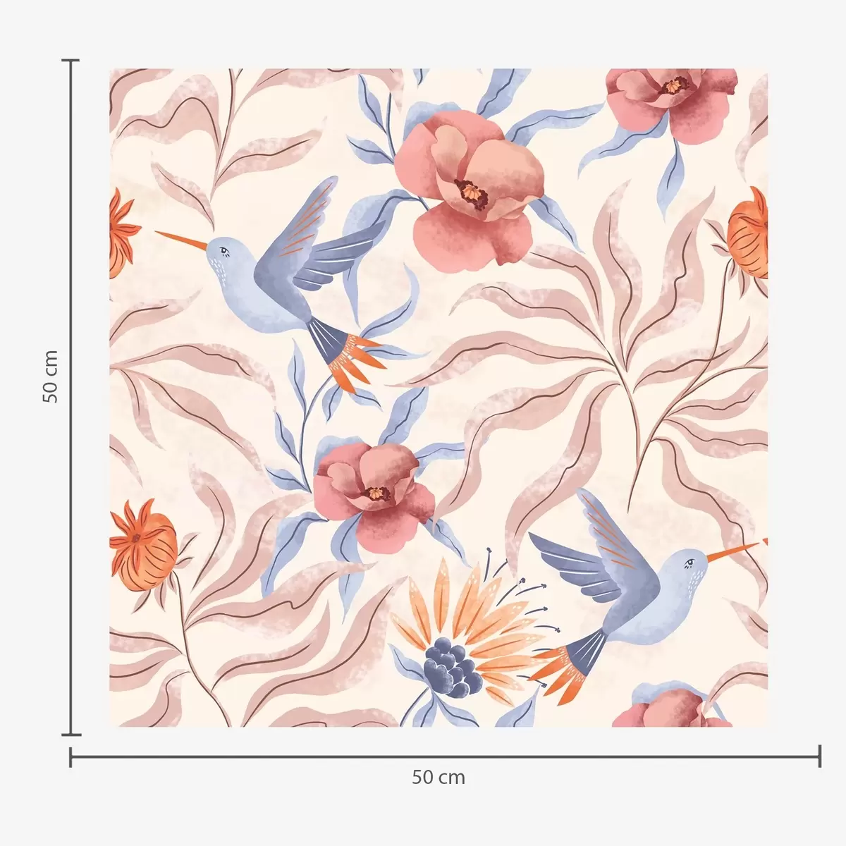 Papel tapiz Colibríes entre grandes flores en tonos rosados y azules Nr. a00733