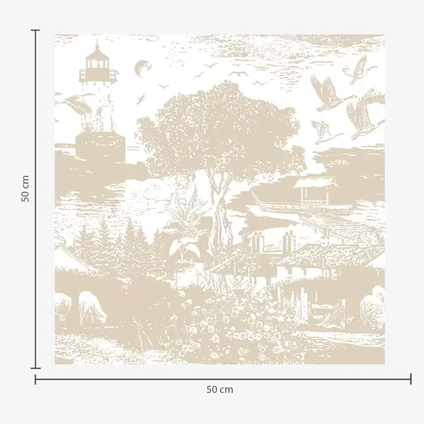 Papel tapiz Escena con faro, árboles y casas en siena Nr. a00739