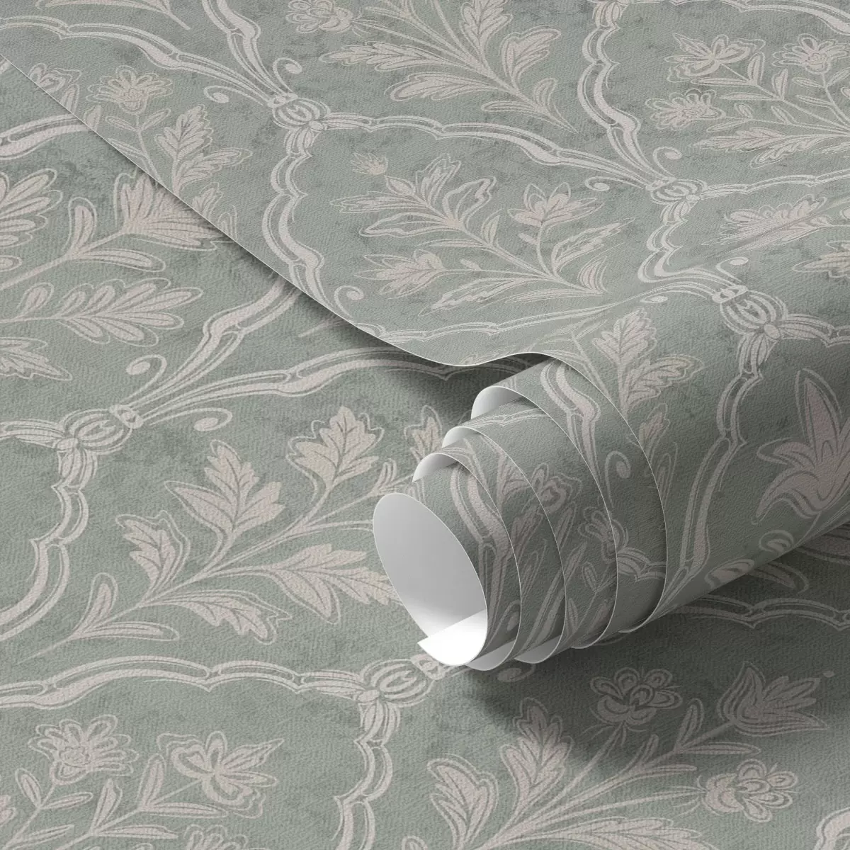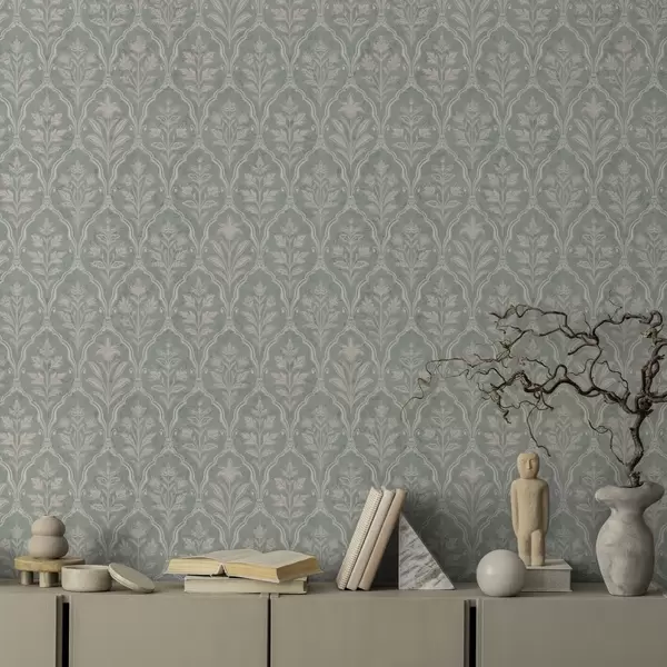 Papel tapiz Damasco menta con finos medallones florales Nr. a00741