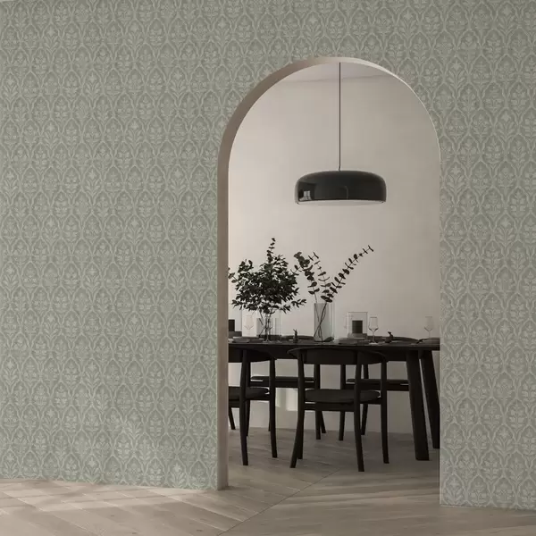 Papel tapiz Damasco menta con finos medallones florales Nr. a00741