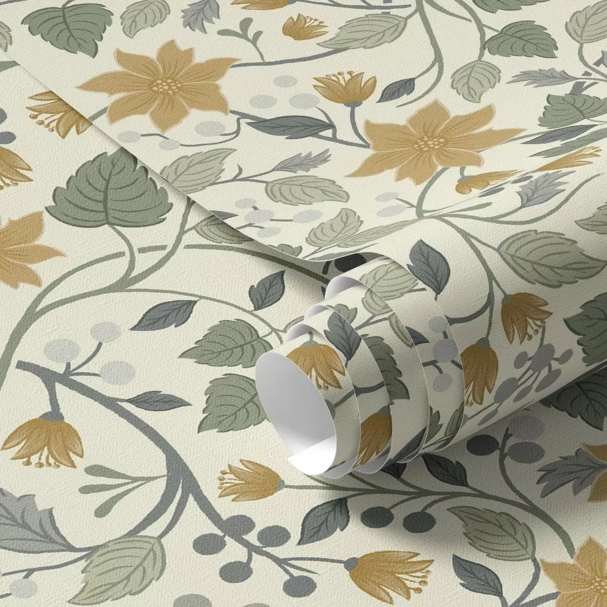 Papel tapiz Ramas trepadoras con flores amarillas y bayas Nr. a00750