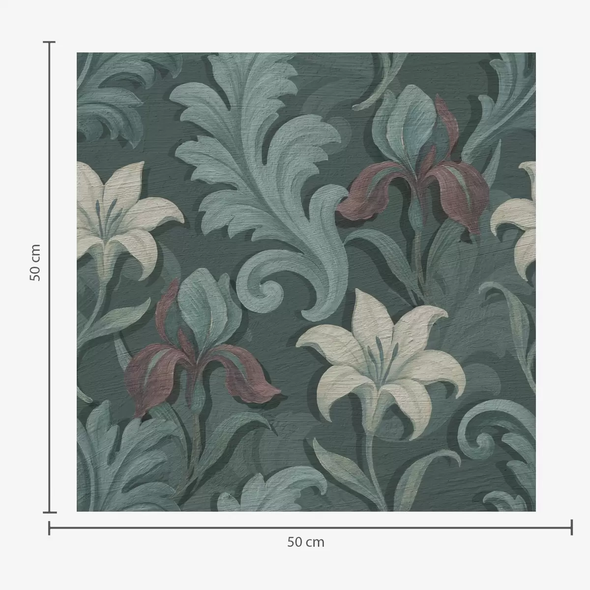 Papel tapiz Fondo verde oscuro con iris y hojas decorativas Nr. a00755