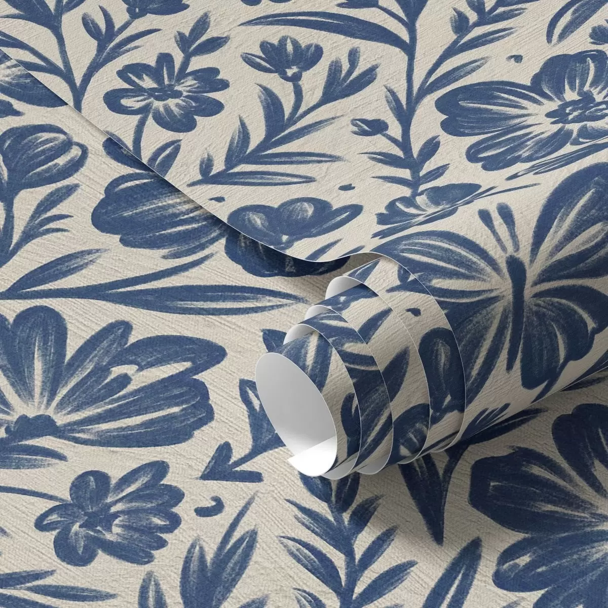 Papel tapiz Adorno floral azul con mariposas Nr. a00758