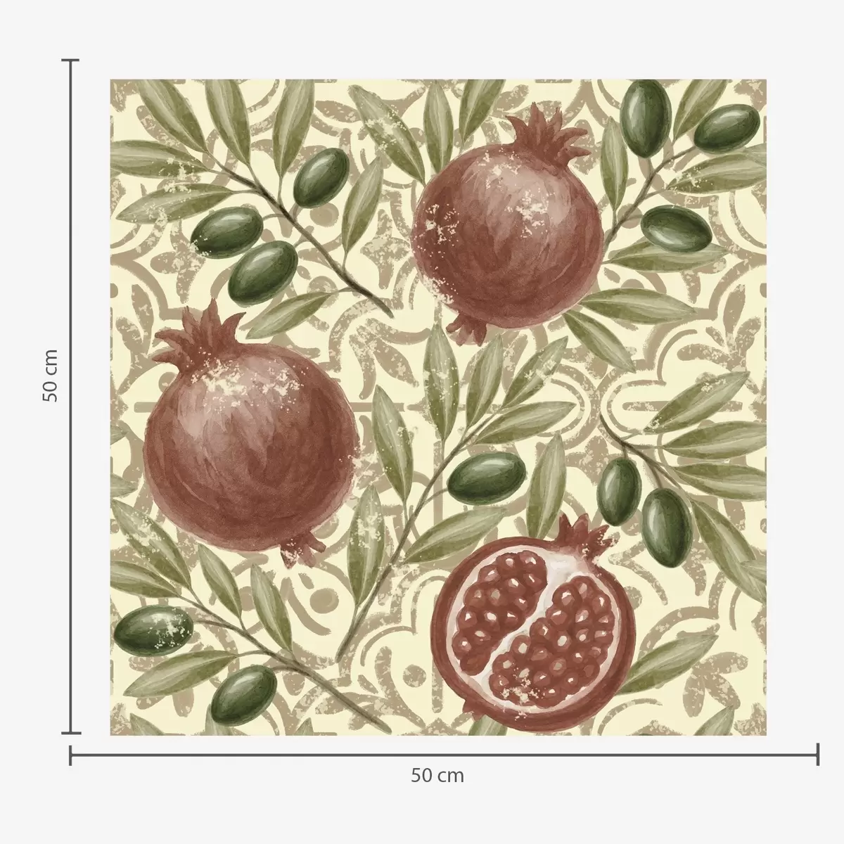 Papel tapiz Granada y ramas de olivo sobre fondo ornamental Nr. a00764