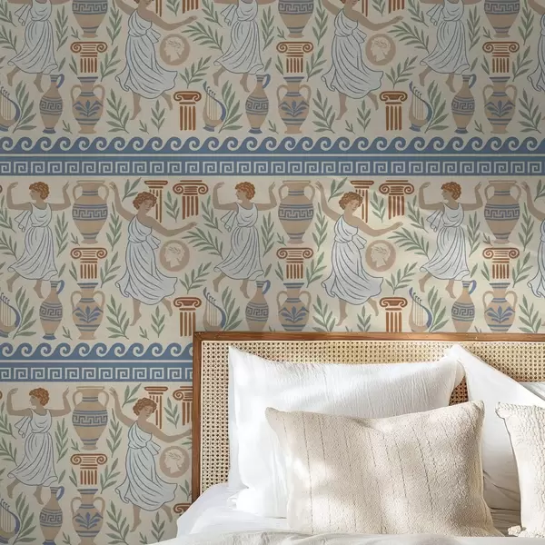 Papel tapiz Adorno griego antiguo con figuras, jarrones y columnas Nr. a00768