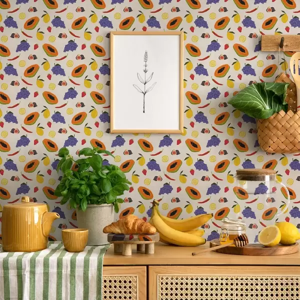 Papel tapiz Papaya, uvas y limones: una mezcla de frutas de colores vivos Nr. a00803