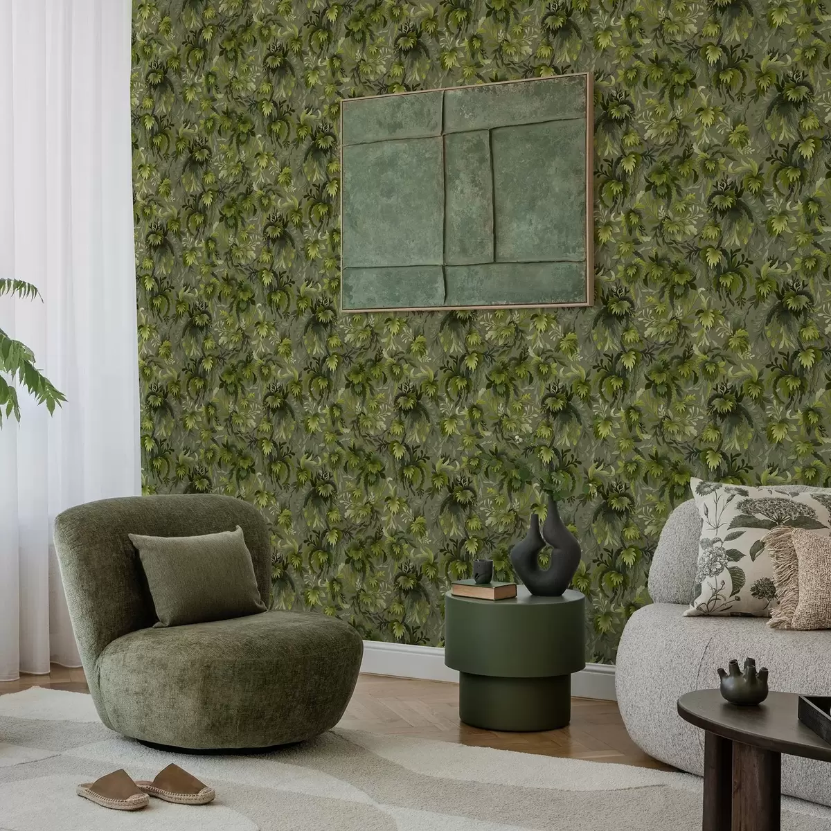 Papel tapiz Denso follaje verde sobre un fondo gris verdoso Nr. a00805v1