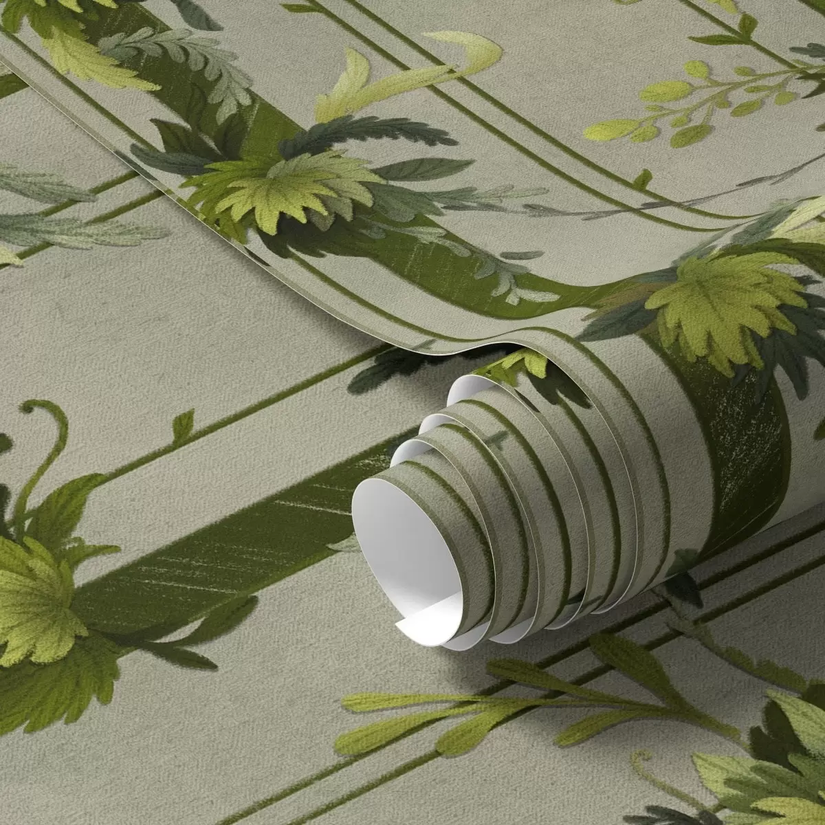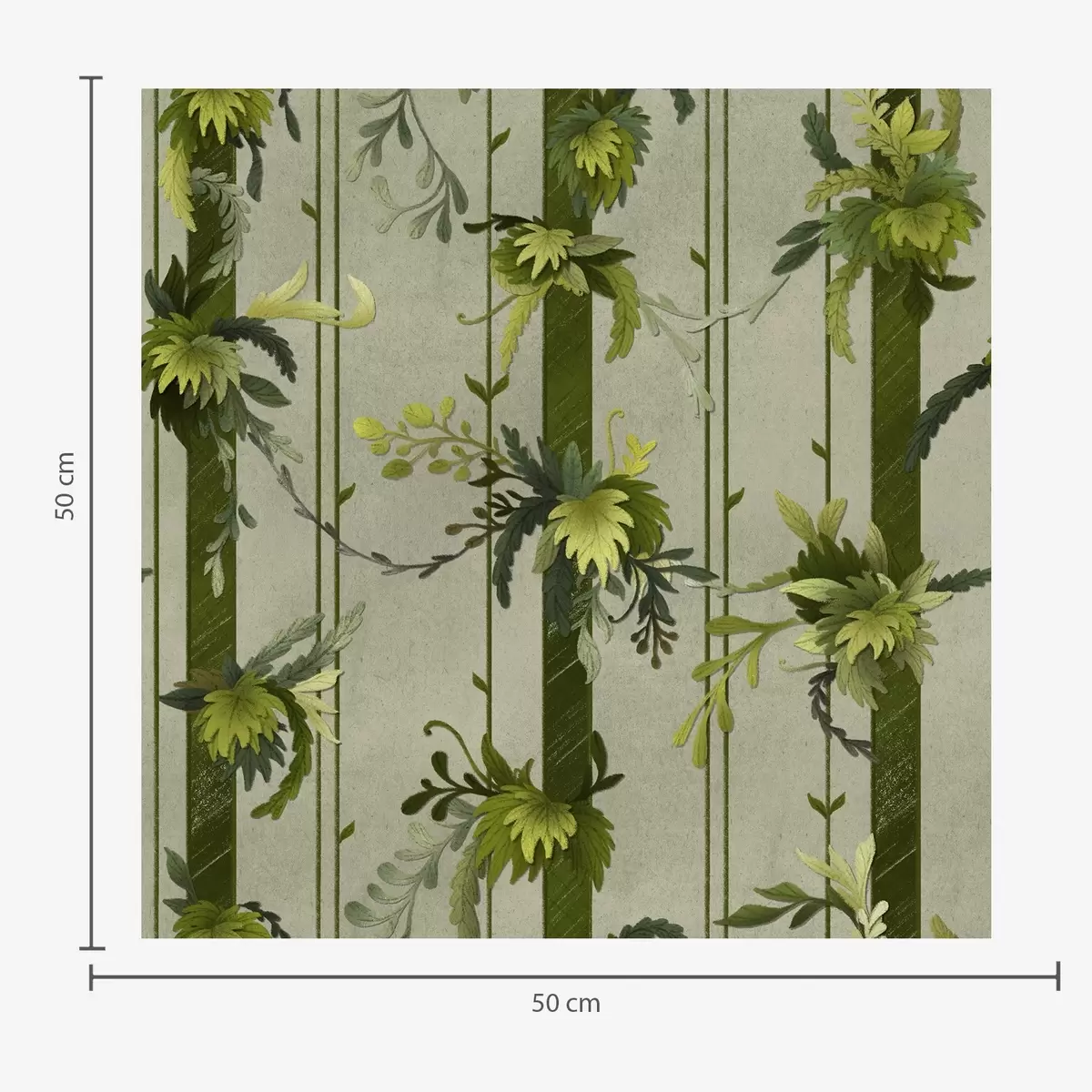 Papel tapiz Hojas verdes en rayas verticales sobre fondo gris Nr. a00807v1