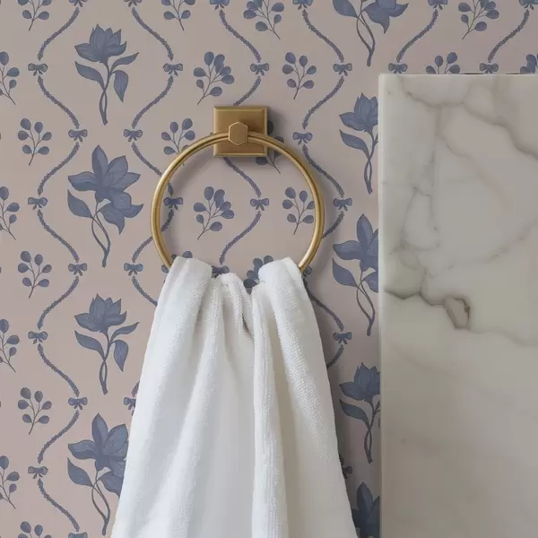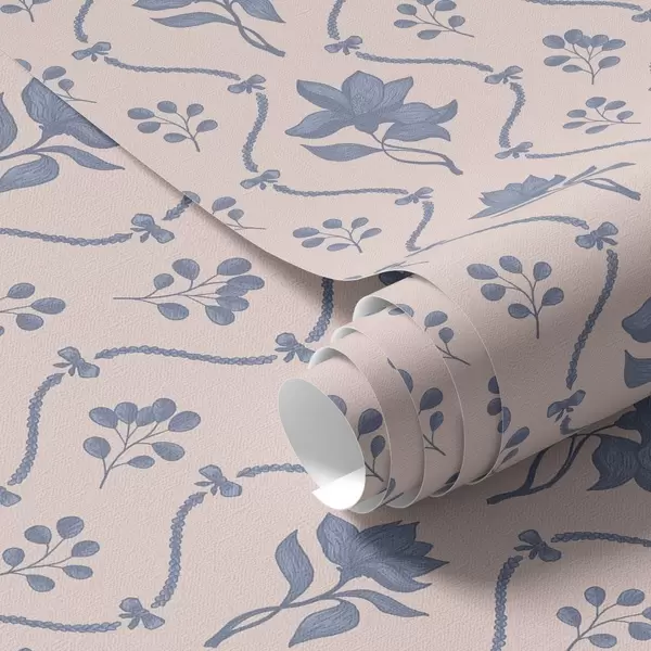Papel tapiz Pequeñas flores y cintas en tonos azules y rosas Nr. a00808v3