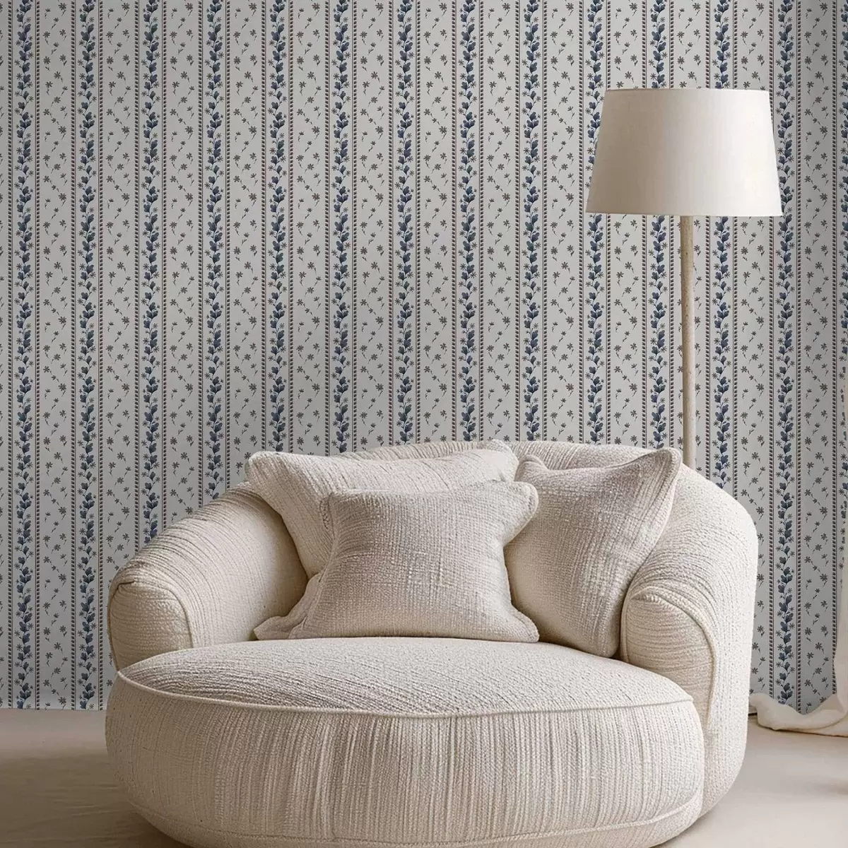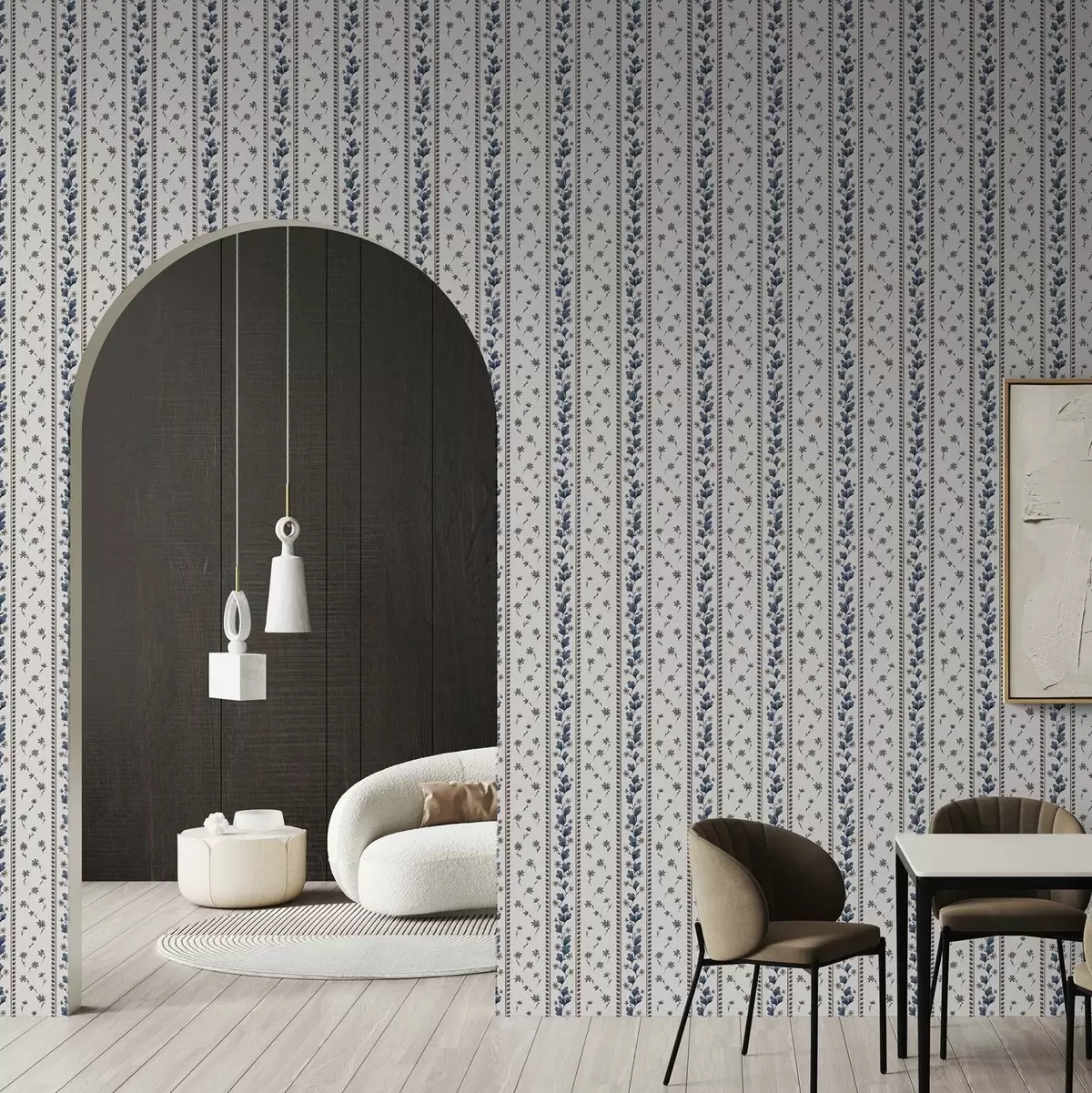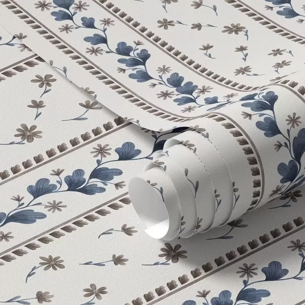Papel tapiz Rayas florales verticales en tonos azul y marrón Nr. a00811v2