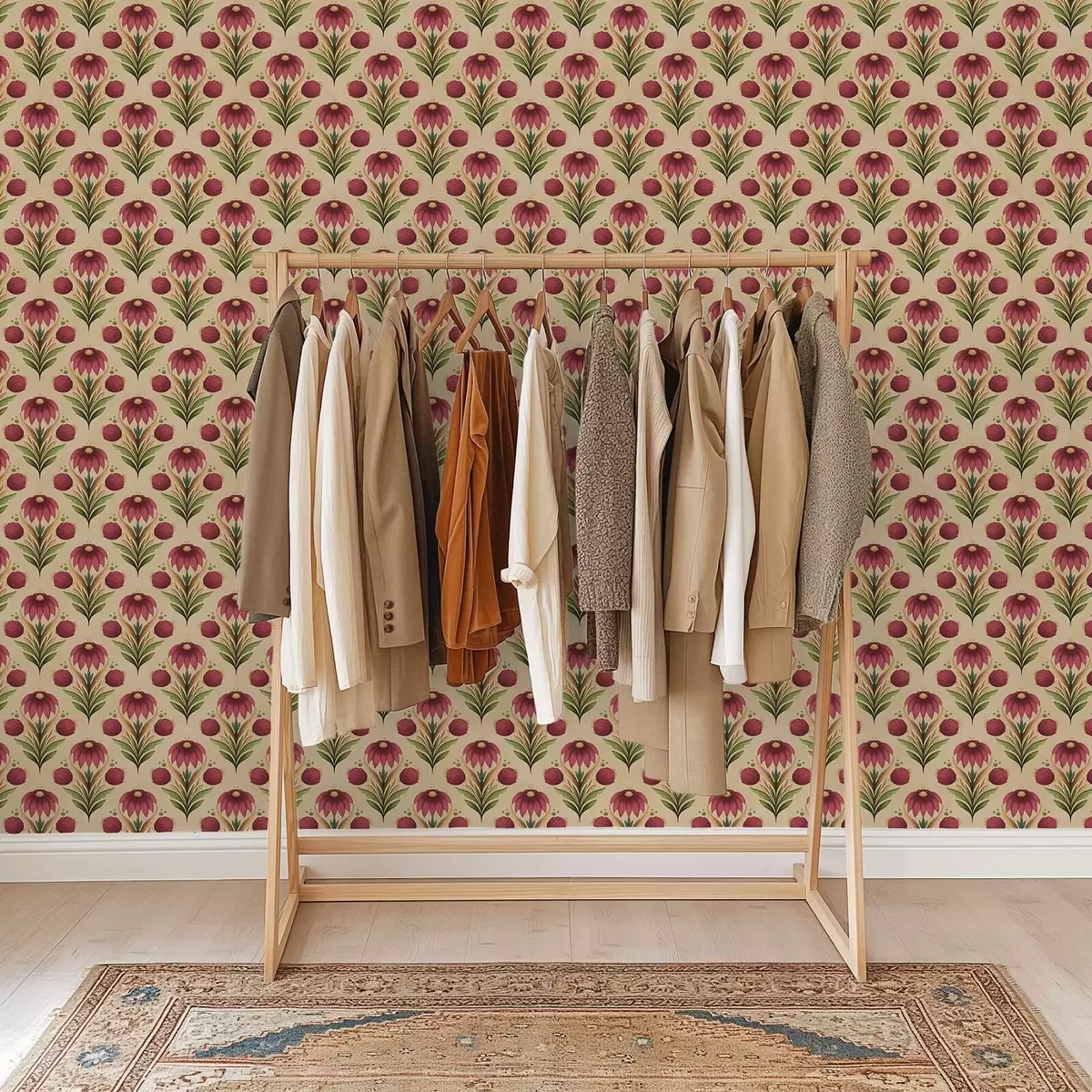 Papel tapiz Adorno floral simétrico sobre fondo beige cálido Nr. a00812v6