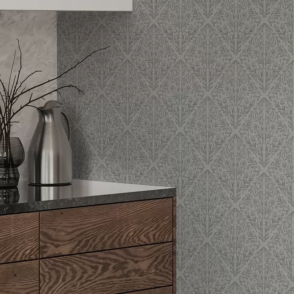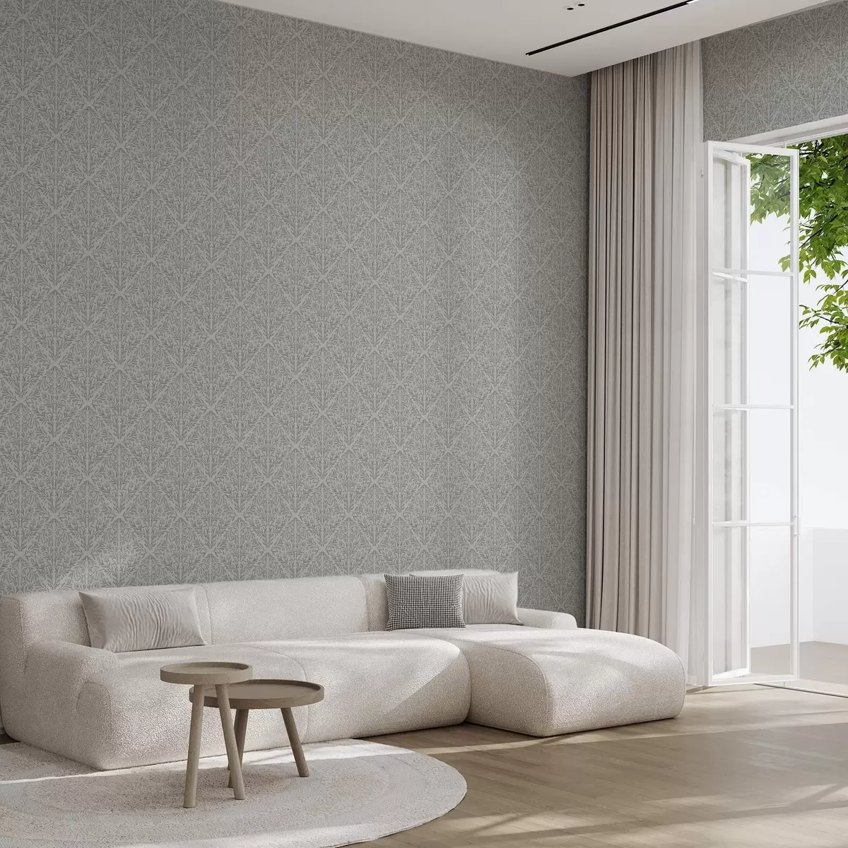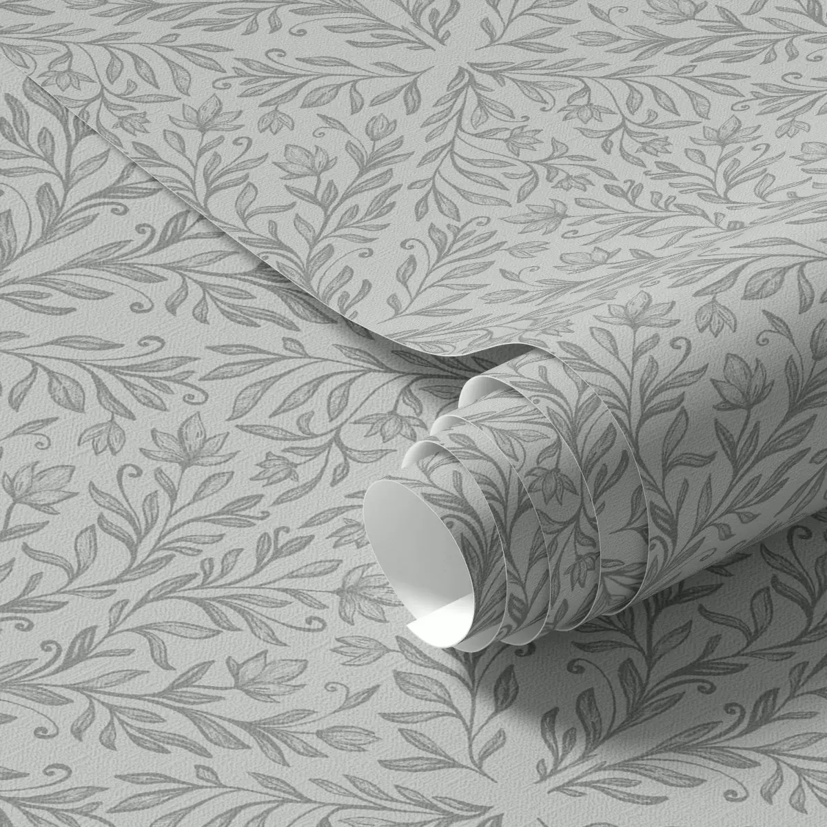 Papel tapiz Damasco botánico en gris claro con contorno suave Nr. a00815v2