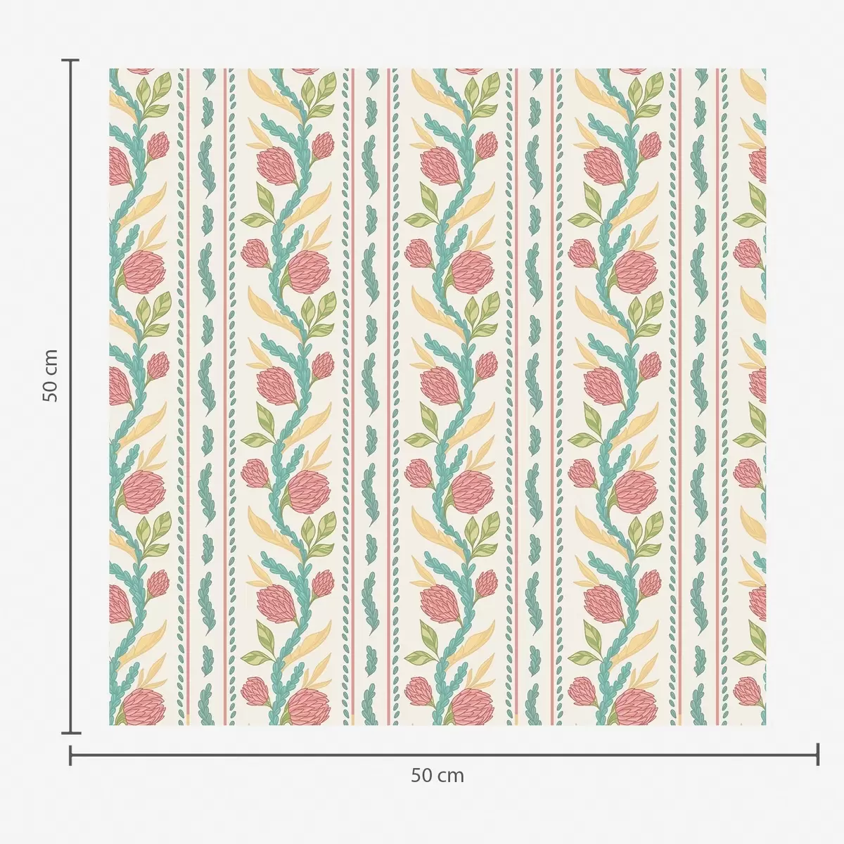 Papel tapiz Rayas con capullos de coral sobre fondo crema claro. Nr. a00816v1