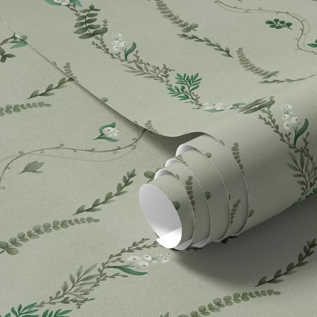 Papel tapiz Enredaderas verticales y ramitas en verde apagado Nr. a00817v1