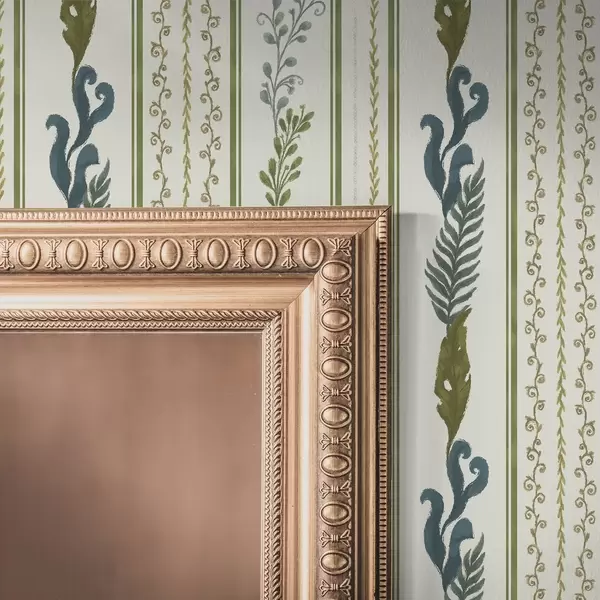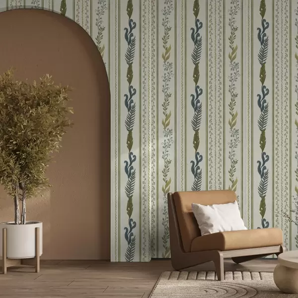 Papel tapiz Rayas con adornos en espiral y grandes ramas en tonos verdes Nr. a00823