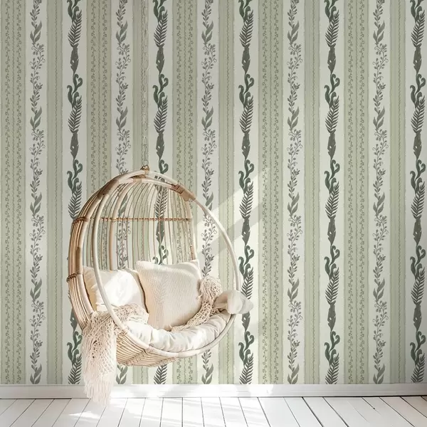 Papel tapiz Rayas con ramificaciones en tonos verdes y grises, contraste suave Nr. a00824