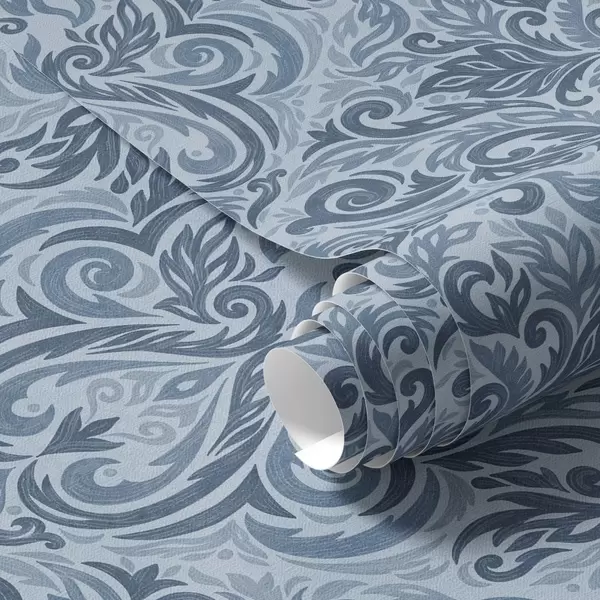 Papel tapiz Damasco en tonos azules fríos, contraste más fuerte. Nr. a00826v2