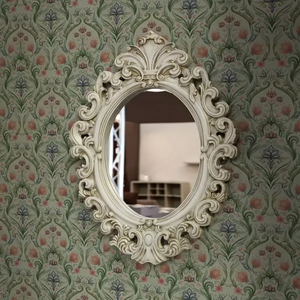 Papel tapiz Adorno floral simétrico, paleta de colores menta y crema. Nr. a00827v1