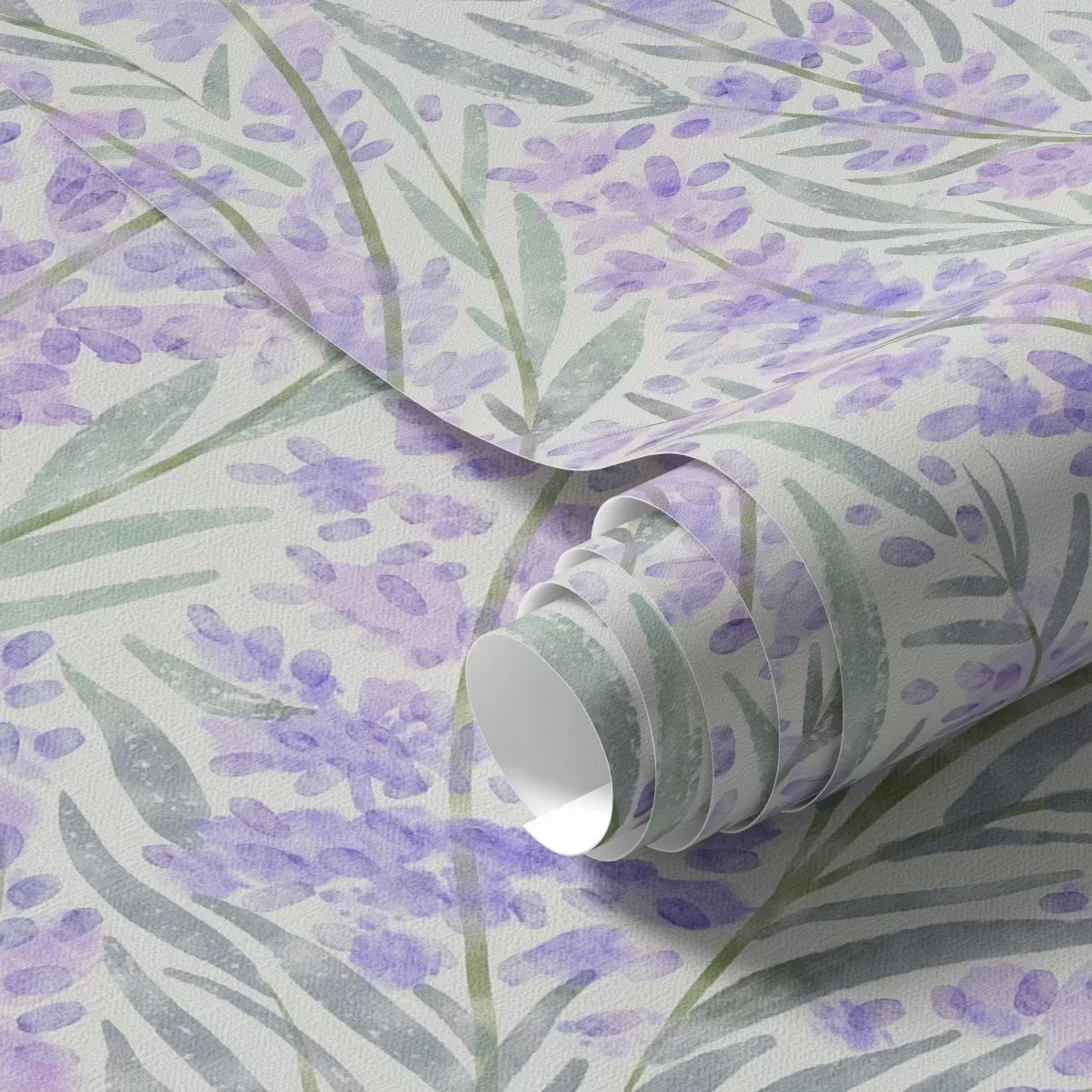 Papel tapiz Ramitas de lavanda en tonos morados sobre fondo claro Nr. a00835