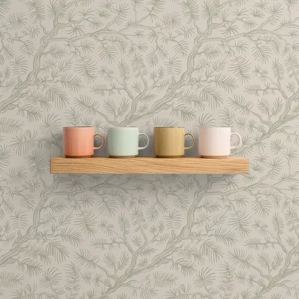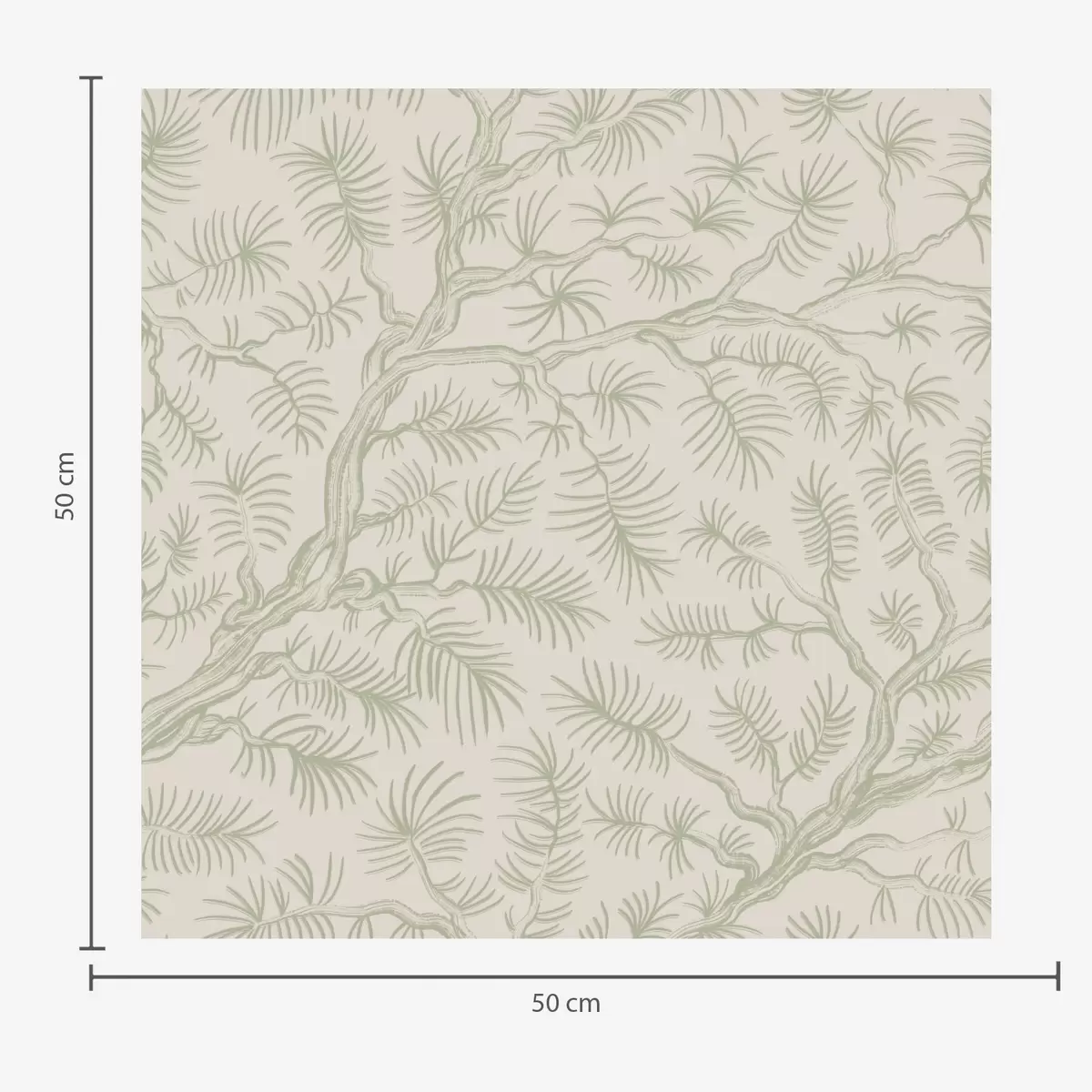 Papel tapiz Ramitas de pino en tonos verde claro sobre fondo beige Nr. a00838v1
