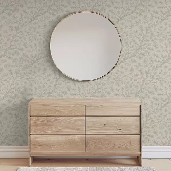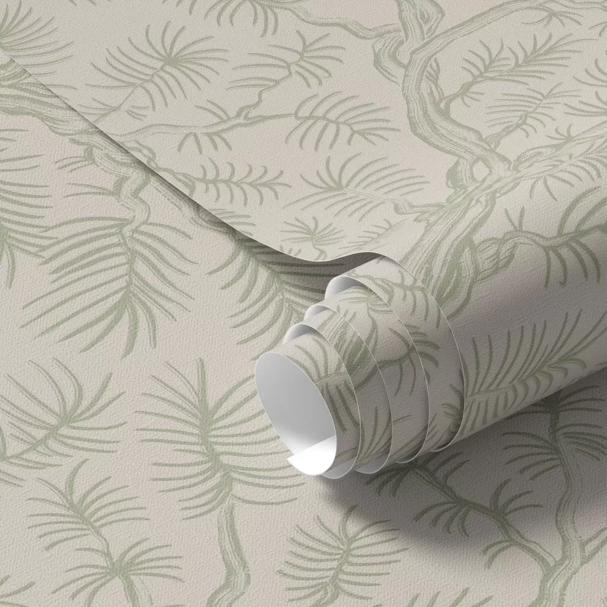 Papel tapiz Ramitas de pino en tonos verde claro sobre fondo beige Nr. a00838v1