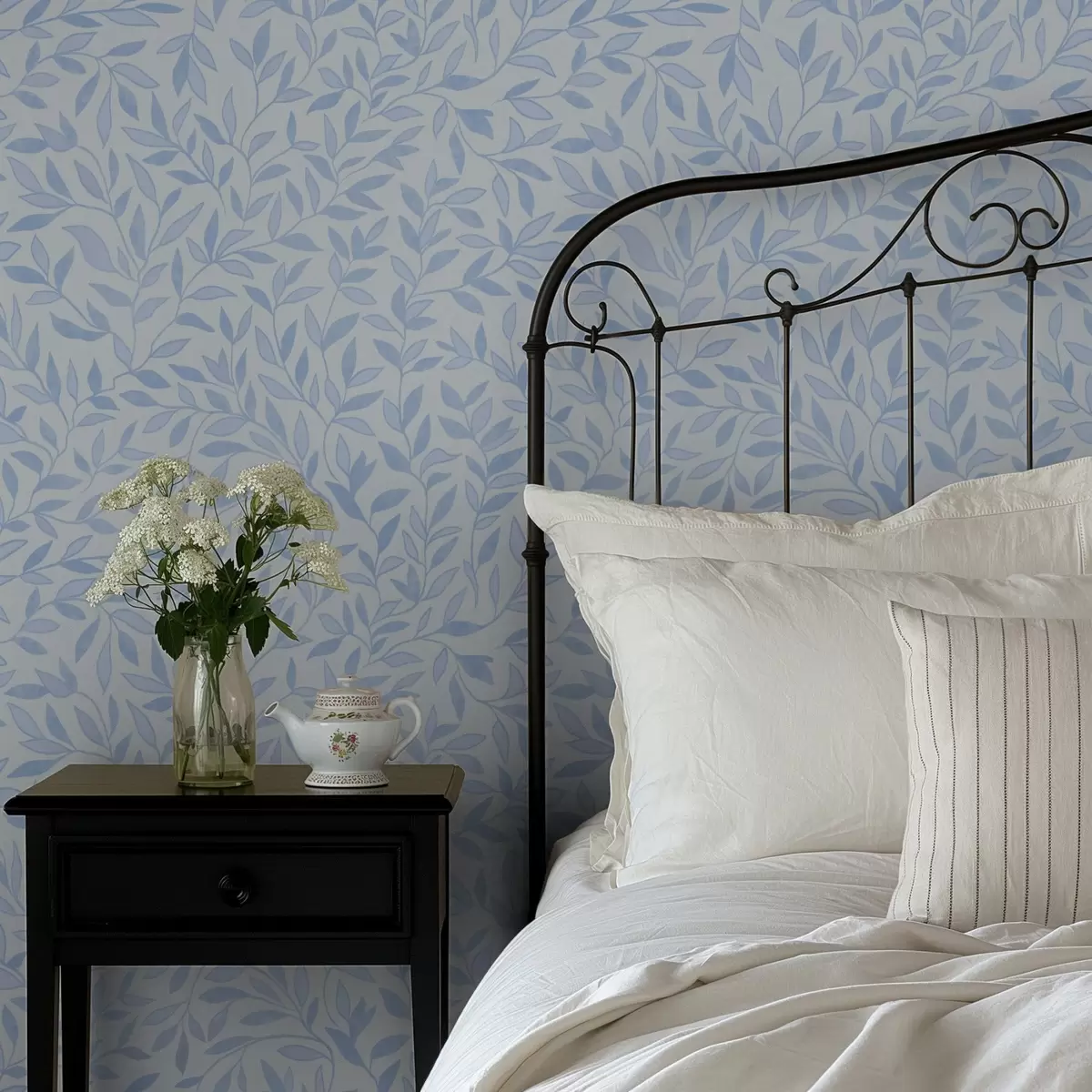 Papel tapiz Ramitas azules con hojas en azul claro Nr. a00842