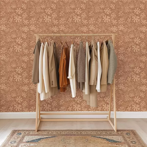 Papel tapiz Hojas y hierbas del campo en una paleta de colores terracota y beige. Nr. a00847