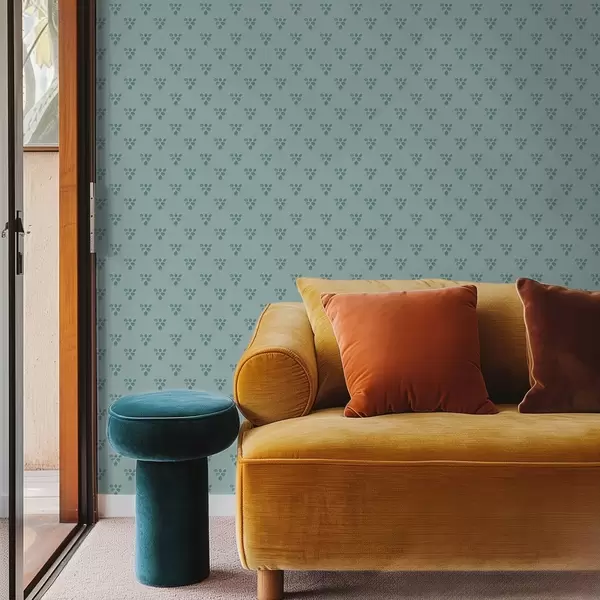 Papel tapiz Pequeña repetición: tríos de hojas en azul frío. Nr. a00848v1