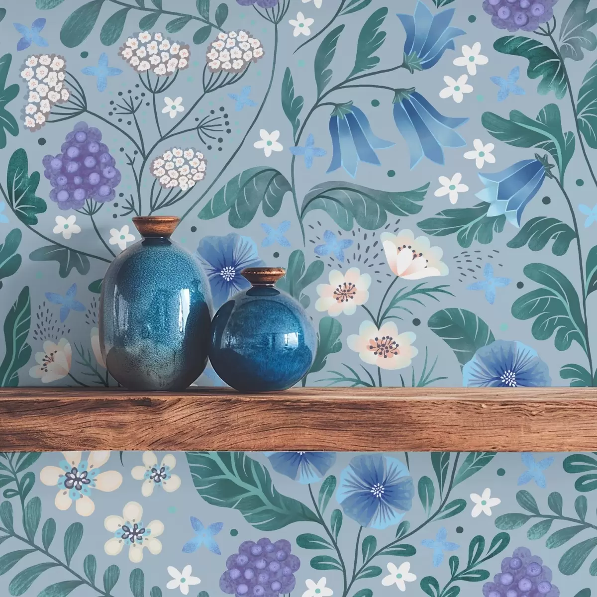 Papel tapiz Flores silvestres y bayas sobre fondo gris azulado Nr. a00849v1
