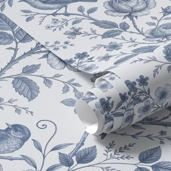 Papel tapiz Pájaros y rosas azules sobre fondo blanco Nr. a00873