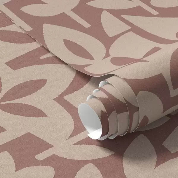 Papel tapiz Siluetas florales geométricas en terracota y crema. Nr. a00875v2