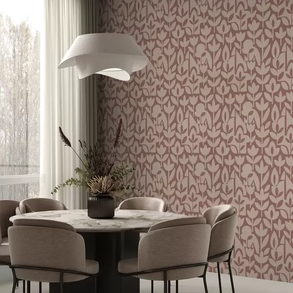 Papel tapiz Siluetas florales geométricas en terracota y crema. Nr. a00875v2