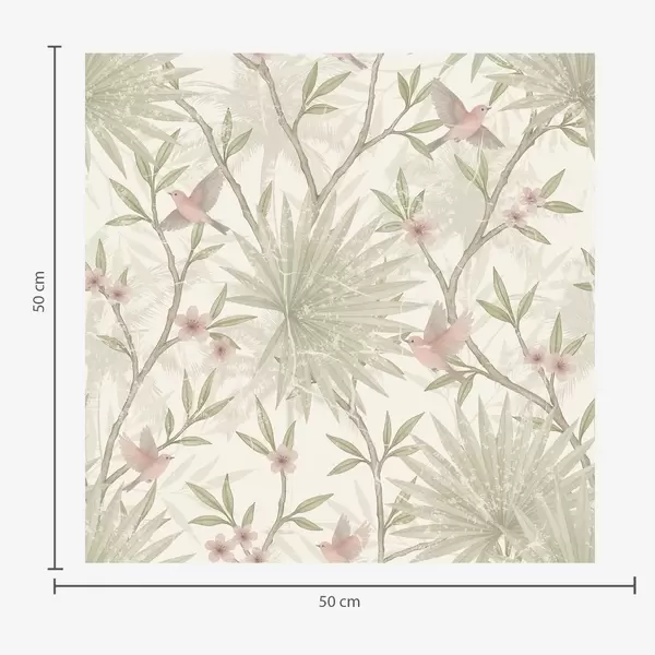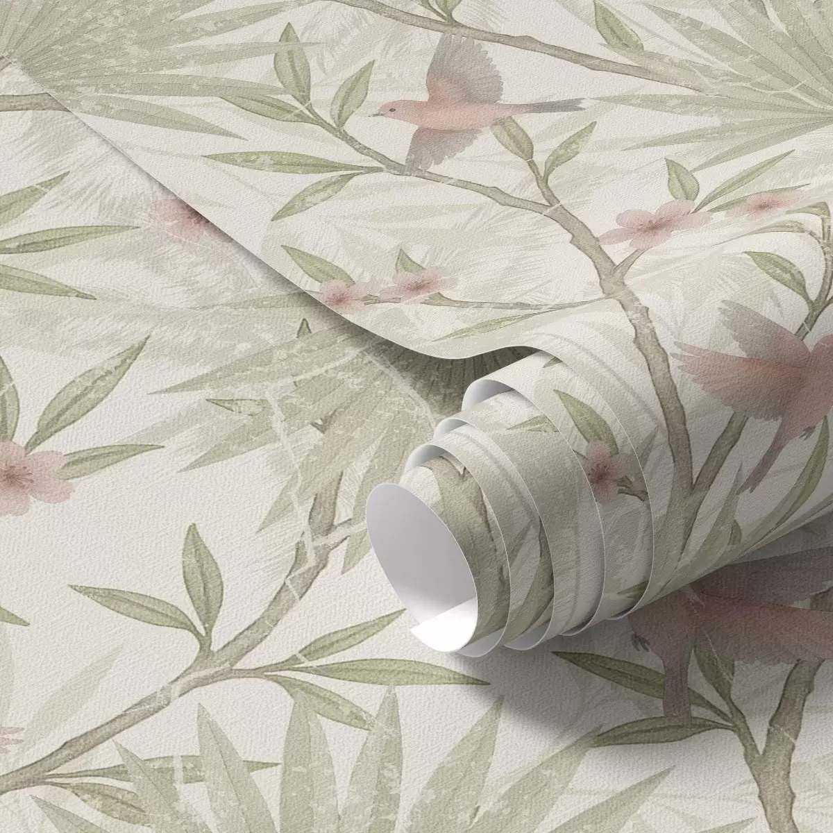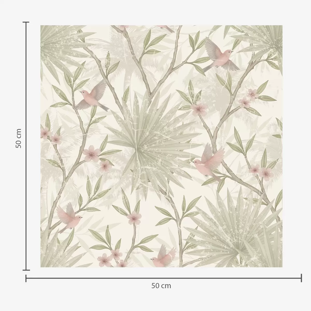 Papel tapiz Delicadas aves rosadas entre hojas de palmera Nr. a00883